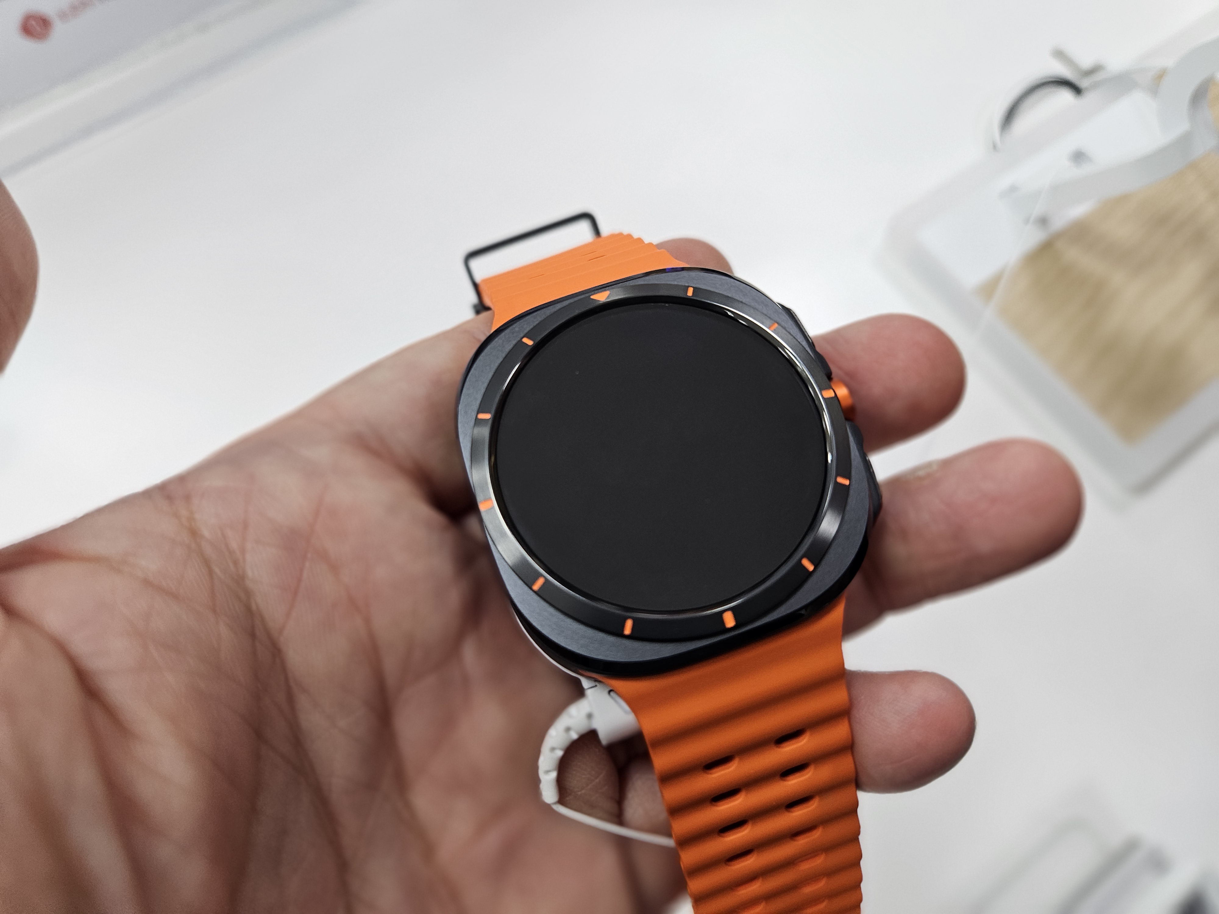 이번 출시에는 새로운 제품인 갤럭시워치 울트라가 포함되었는데요. 사각 프레임에 원형 디스플레이가 어색할줄 알았는데 생각보다 괜찮더라구요.