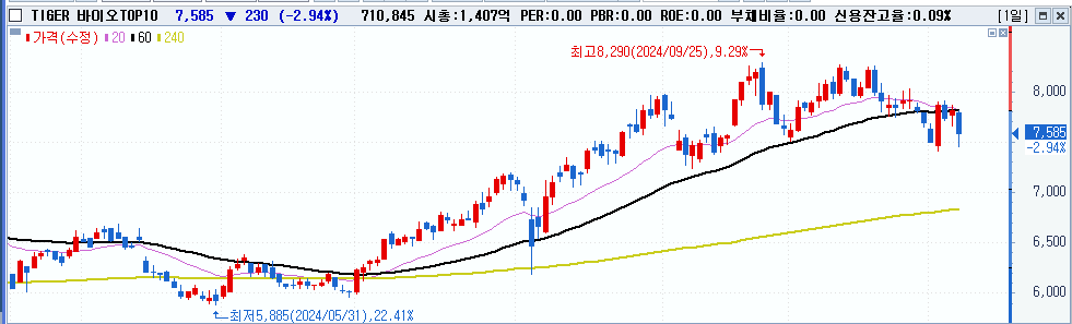 바이오는 금리인하와 맞물려 수혜를 받는 종목들인데 트럼프 당선으로 채권 금리가 급등하고 금리 인하 폭과 속도 조절 불확실성이 대두되며 차익 실현이 나오고 있네요.